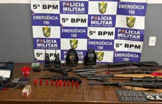 Policiais militares do 5º Batalhão prenderam, nesta terça-feira (17), um homem por porte ilegal de arma de fogo em uma propriedade